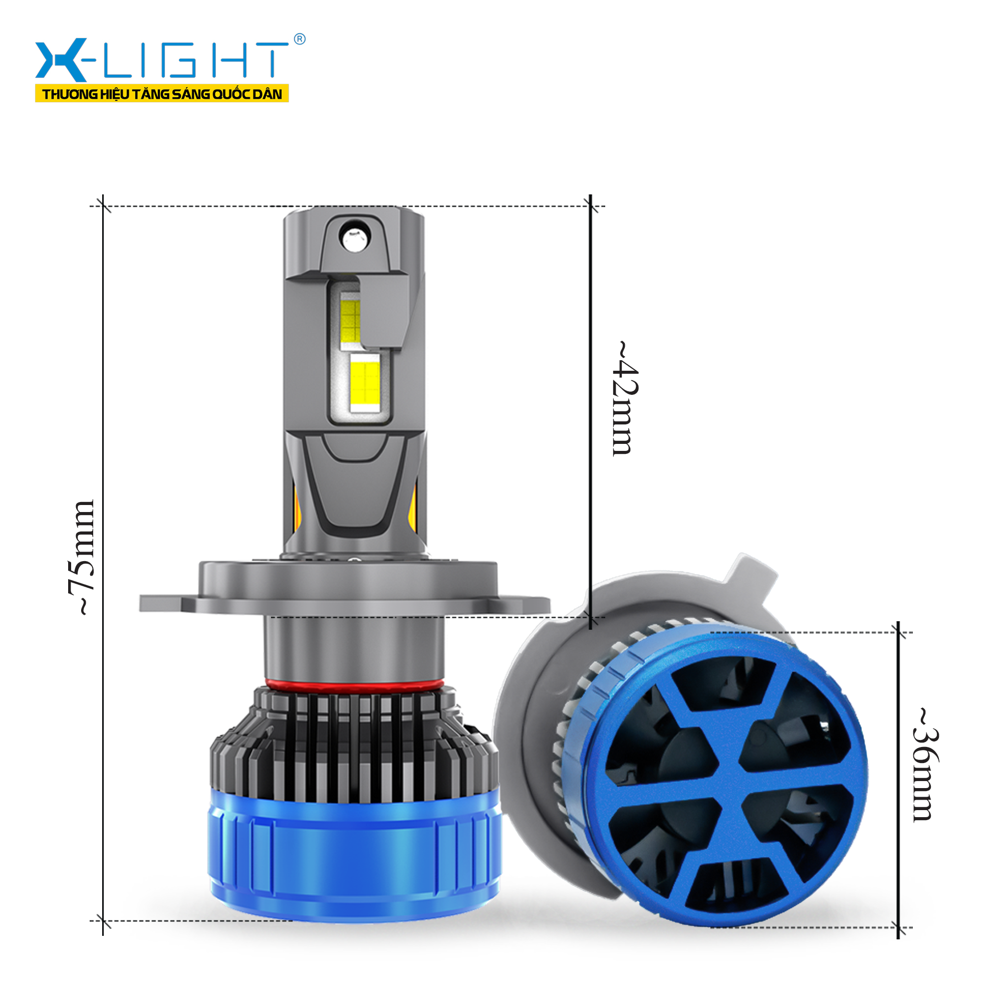 Bóng LED X-Light S6 Pro V2 được thiết kế với chiều dài chỉ khoảng 75mm, thuộc nhóm bóng LED có kích thước gọn nhất trong phân khúc. Nhờ thiết kế tối ưu theo không gian chóa đèn xe, sản phẩm tương thích tốt với nhiều dòng xe và hạn chế tối đa tình trạng cấn chóa khi lắp đặt. Việc thiết kế với kích thước nhỏ gọn giúp người dùng dễ dàng thay thế trực tiếp tại nhà mà không cần can thiệp kỹ thuật phức tạp. Ngoài ra, S6 Pro V2 ghi dấu ấn bằng nhận diện đặc trưng của X-Light với tông màu xanh thương hiệu, tạo cảm giác chỉn chu, đồng bộ và dễ nhận biết ngay từ cái nhìn đầu tiên.