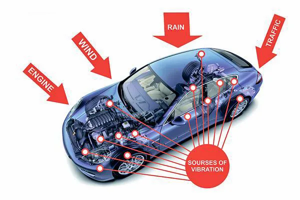 - Tiếng ồn do xe: tiếng động cơ, tiếng ống xả, tiếng ồn từ các chi tiết trên xe như cửa, sàn, capô, khoang hành lý. Cũng Có thể vỏ xe quá mỏng gây nên sự cộng hưởng âm thanh, rung và rè khi vận hành. Chi tiết gây ra nhiều tiếng ồn nhất là các cánh cửa, sau đó đến động cơ và các bộ phận khác,…