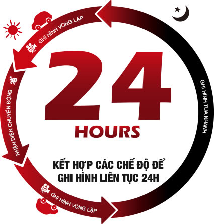 - Ghi hình liên tục 24h.