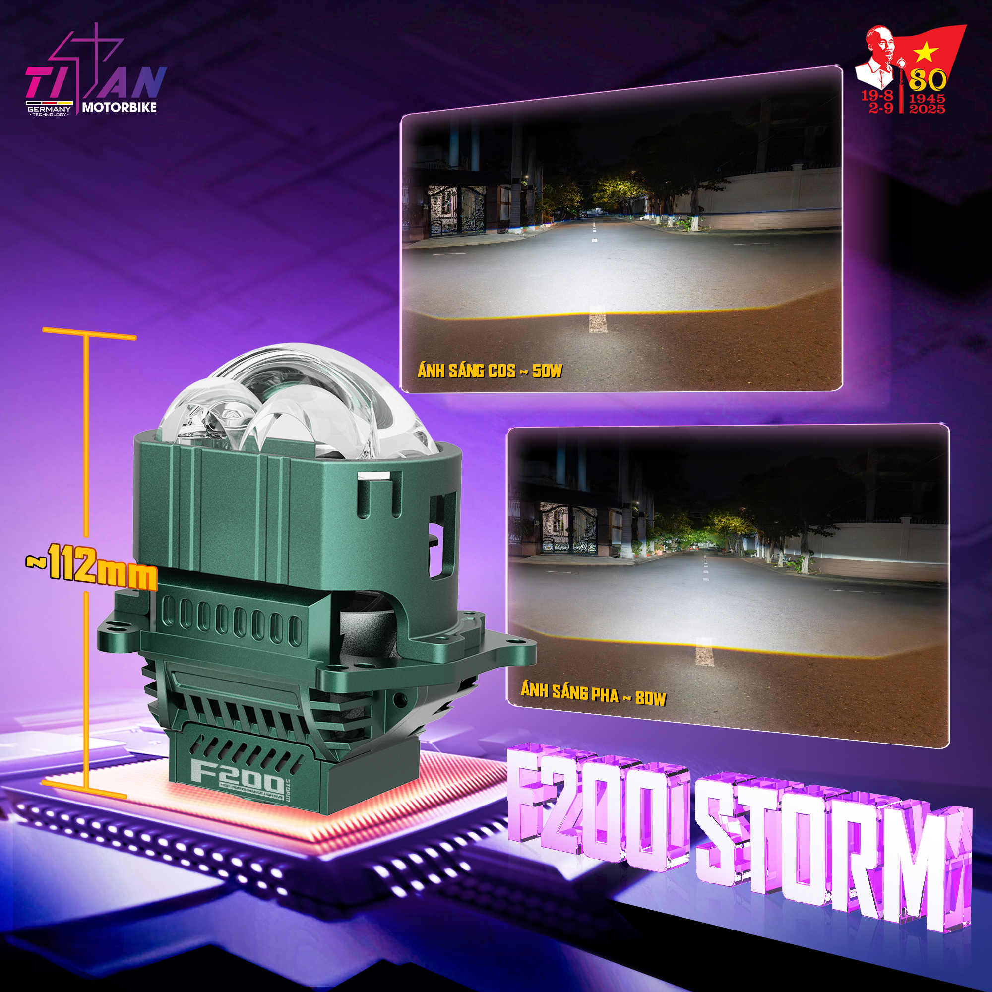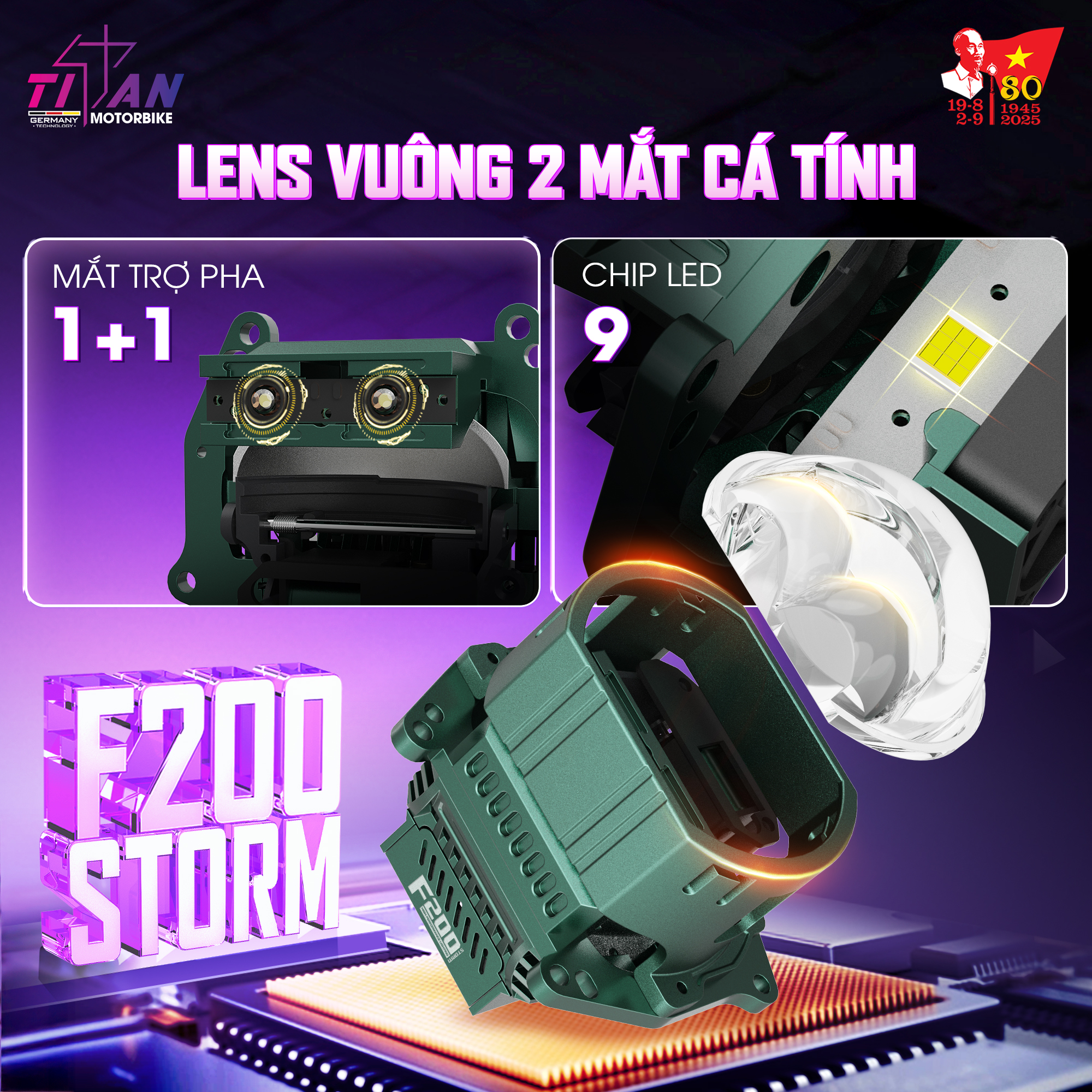 Vào ngày 20/08/2025, Titan Moto chính thức giới thiệu siêu phẩm bi LED Titan Moto F200 Storm, một dòng sản phẩm bi lens khuyết đột phá, tích hợp hai mắt trợ pha, mang đến ánh sáng pha mạnh mẽ và sắc nét, giúp bạn dễ dàng chinh phục mọi cung đường trong đêm tối. Với mức giá niêm yết 6.000.000 VNĐ/Bộ, Titan Moto F200 Storm hứa hẹn sẽ gây bão trên thị trường và là lựa chọn không thể bỏ qua cho những tín đồ yêu thích sự hoàn hảo trong ánh sáng.