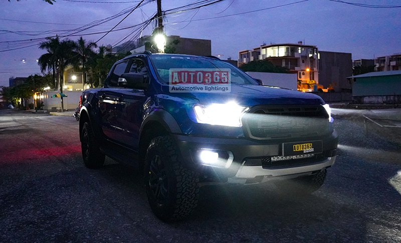 Ranger Raptor độ đèn bi gầm gtr lens xanh tăng sáng xe đẳng cấp.