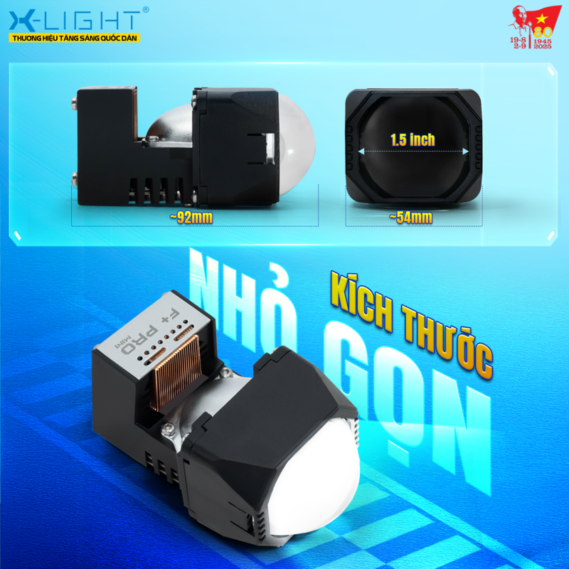 X-Light F+ Pro Mini được thiết kế nhỏ gọn trong phân khúc 1.5 inch, mang đến sự tiện lợi tối đa cho việc lắp đặt trên những dòng xe có cụm đèn chật hẹp. Nhờ vào ưu thế kích thước, sản phẩm trở thành giải pháp nâng cấp ánh sáng hiệu quả cho nhiều dòng xe mà không cần can thiệp đến cấu trúc nguyên bản, giúp chủ xe an tâm giữ trọn tính đồng bộ và thẩm mỹ của xe.