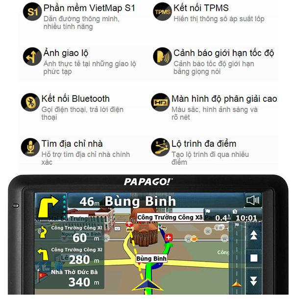Một sản phẩm với nhiều tính năng hấp dẫn có mặt tại papago Vietmap!500 với độ phân giải màn hình cao không còn gì bằng.